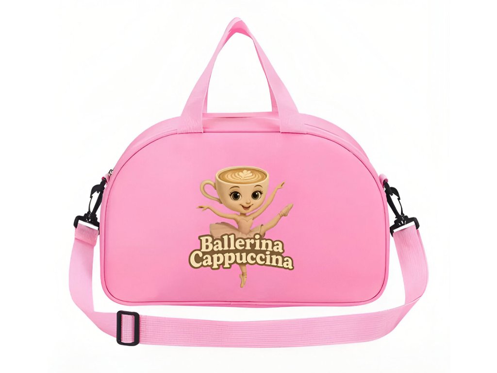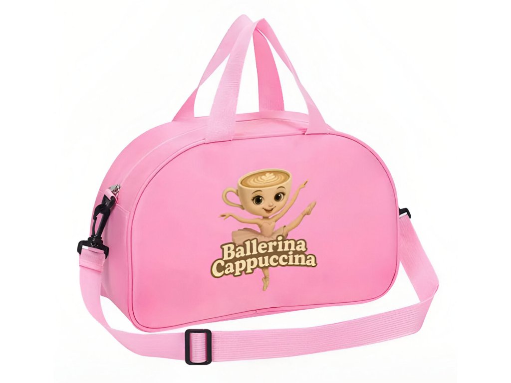 Prostorná taška přes rameno pro všechny holky, které mají rády italské postavičky AI - Cappuccinu Ballerinu. Taška s oblíbenou tanečnicí nabízí jednu hlavní prostornou kapsu uzavíratelnou na zip. Popruh přes rameno lze nastavit. Svou velikostí je ideální na krátkodobé cestování nebo volnočasové aktivity.