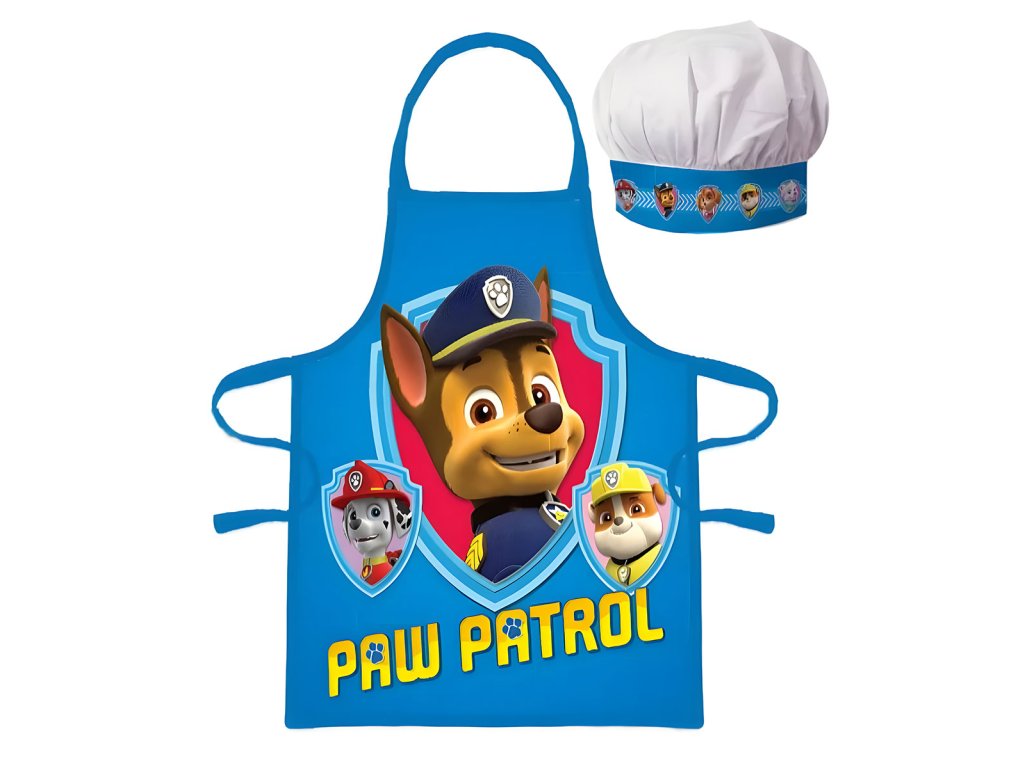 Chlapecká zástěra s čepicí a motivem oblíbené pohádky Tlapková patrola. S tímto kuchařským setem se bude Váš pomocník cítit při pomáhání v kuchyni jako šéfkuchař se vším, co k tomu patří. Zástěra se dá také využít např. do výtvarné výchovy, keramiky a různých kreativních činností jako ochrana oděvu. Díky pohodlnému střihu a nastavitelnému zavazování skvěle padne a poskytne maximální komfort při nošení. Krásný design s motivem statečných pejsků potěší každého malého chlapce a zpříjemní mu tak chvíle tvoření.
