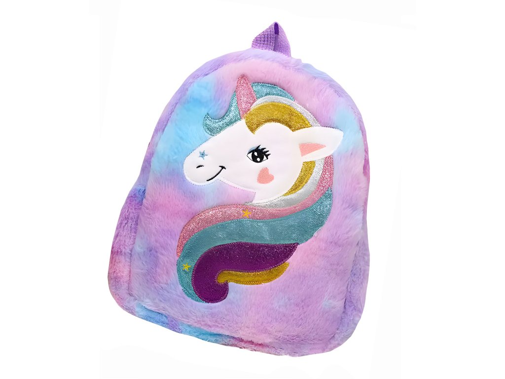 Chlupatý plyšový batoh Fialový- Unicorn