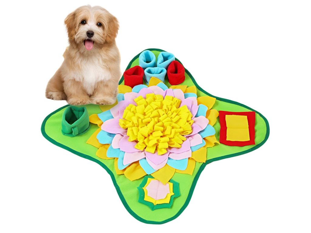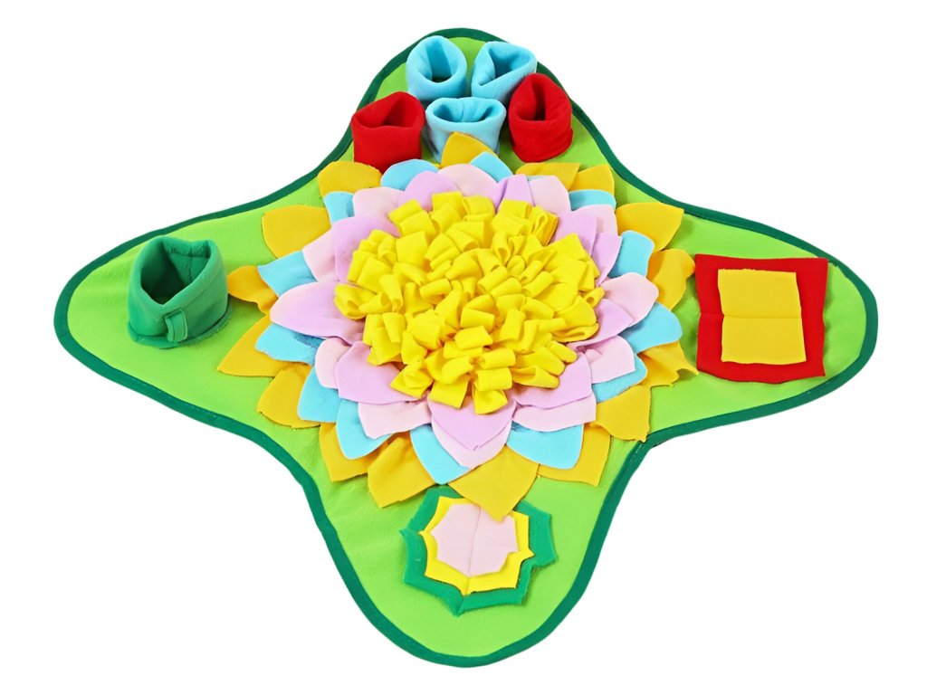 Čmuchací kobereček na pamlsky nebo granule je zcela jedinečná a unikátní interaktivní hračka, která využívá jeden z nejsilnějších psích smyslů – ČICH. Čmuchací koberečky jsou navrženy tak, aby stimulovaly přirozené psí pudy, mezi které bezpochyby patří i hledání potravy v přírodě. Vyčmucháváním své porce granulí nebo pamlsků dopřejete svému psímu parťákovi nejen plné bříško, ale také psychickou pohodu a relax.