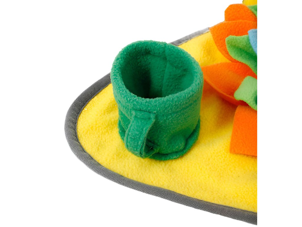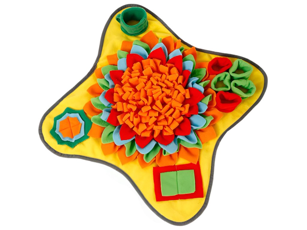 Čmuchací kobereček na pamlsky nebo granule je zcela jedinečná a unikátní interaktivní hračka, která využívá jeden z nejsilnějších psích smyslů – ČICH. Čmuchací koberečky jsou navrženy tak, aby stimulovaly přirozené psí pudy, mezi které bezpochyby patří i hledání potravy v přírodě. Vyčmucháváním své porce granulí nebo pamlsků dopřejete svému psímu parťákovi nejen plné bříško, ale také psychickou pohodu a relax.