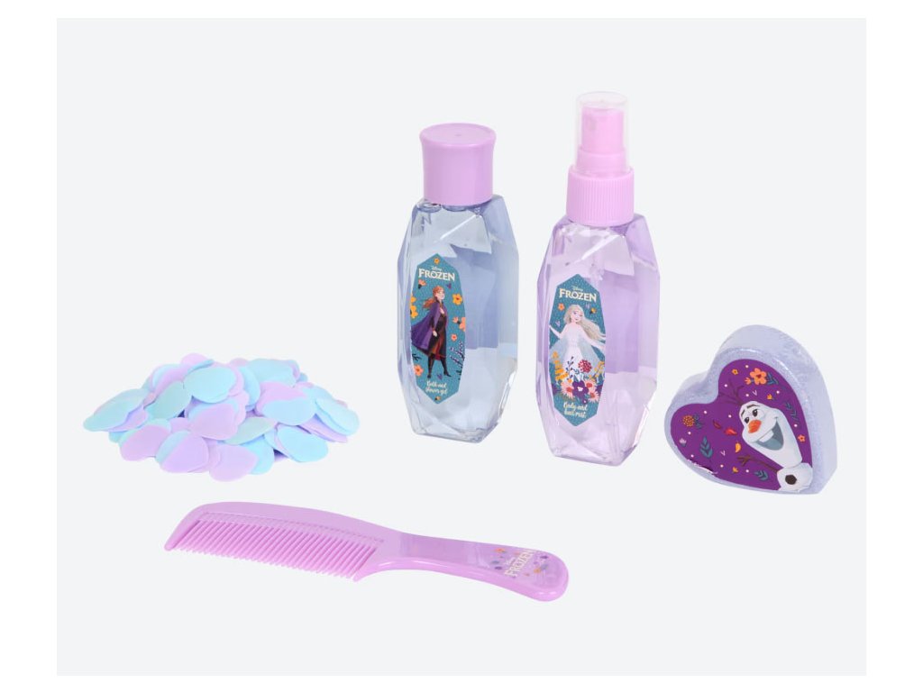 Kosmetická sada inspirovaná pohádkovým světem Ledového království potěší všechny malé slečny. Obsahuje voňavý sprej na tělo a vlasy, praktický hřeben, šumivou kouli do koupele, koupelové konfety a sprchový gel. Vše v krásném designu Frozen s princeznami Annou a Elsou. Skvělý dárek, který spojuje péči, radost i zábavu při koupání a každodenní hygieně.