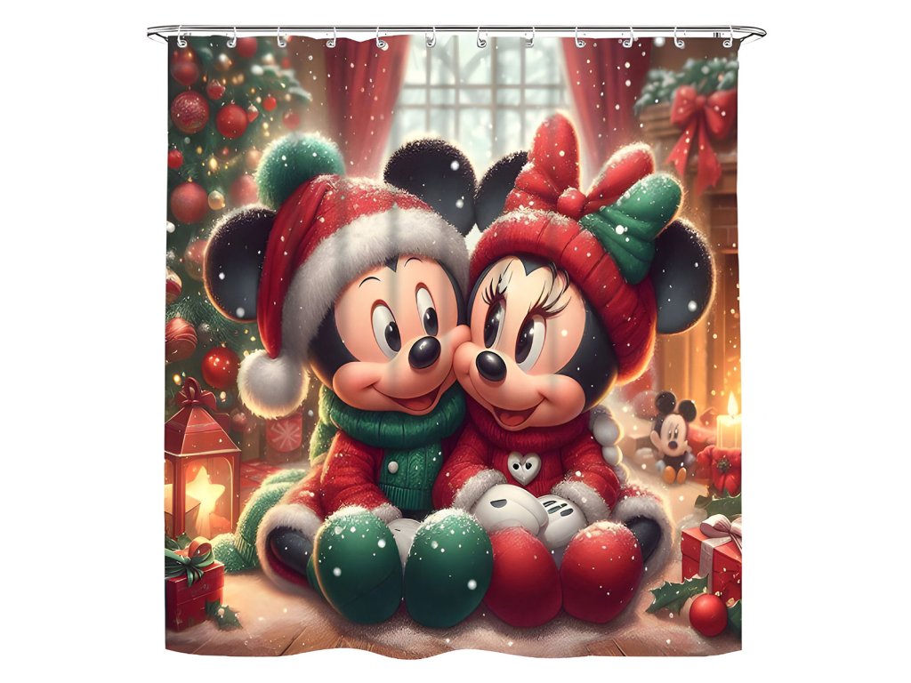 Designový multifunkční závěs 180x180 cm - Mickey a Minnie/Červeno-zelené vánoce