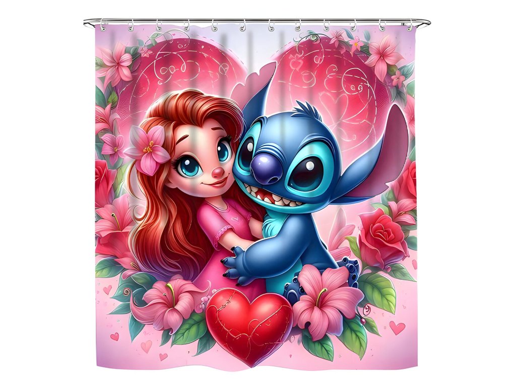 Designový multifunkční závěs 180x180 cm - Zrzečka a Stitch/Srdce