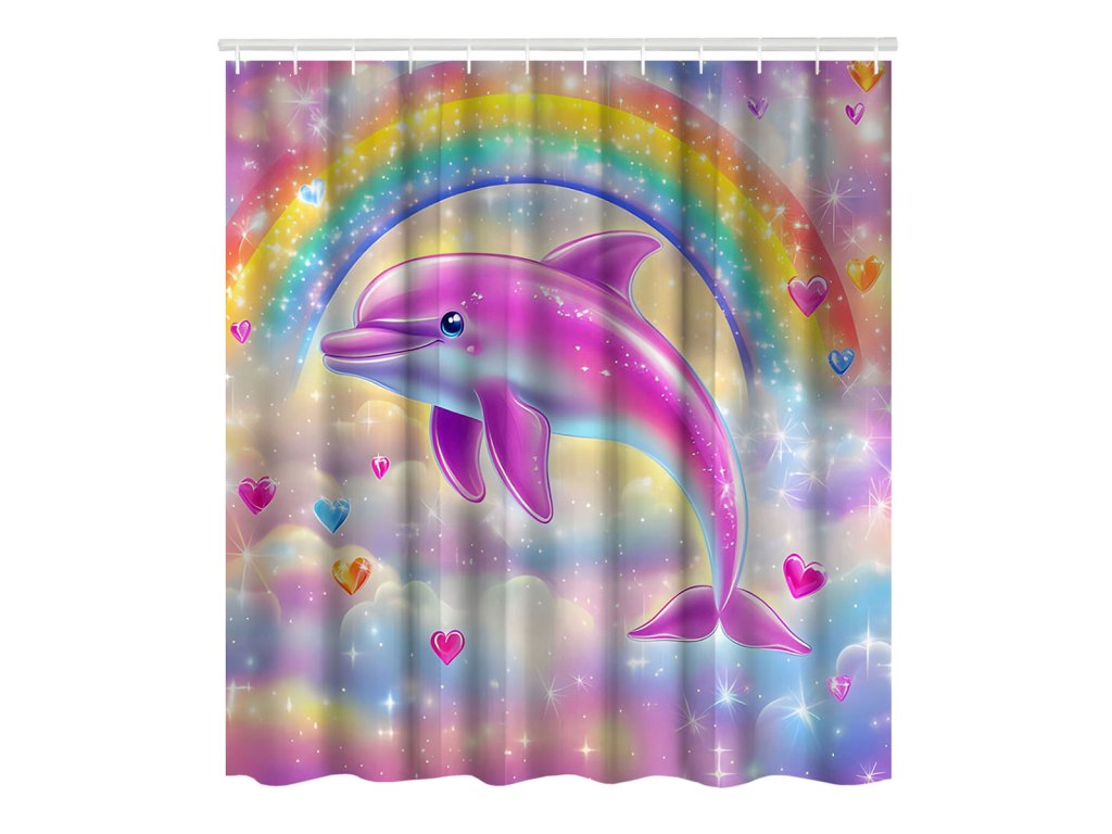 Designový multifunkční závěs duhový 180x180 cm - Růžový delfín