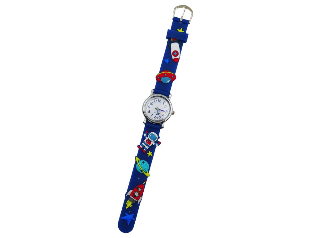Stylové dětské hodinky s motivem astronauta a vesmírné rakety potěší každého malého objevitele galaxií! Díky přehlednému ciferníku s jasně označenými číslicemi si děti snadno osvojí určování času. Jasně čitelné číslice a barevně odlišené ručičky pomáhají dětem snadno pochopit, kolik je hodin, a zároveň si osvojit první základy určování času. Praktický a hravý doplněk, který si děti zamilují. Skvělý tip na dárek k narozeninám, svátku nebo jen tak pro radost.