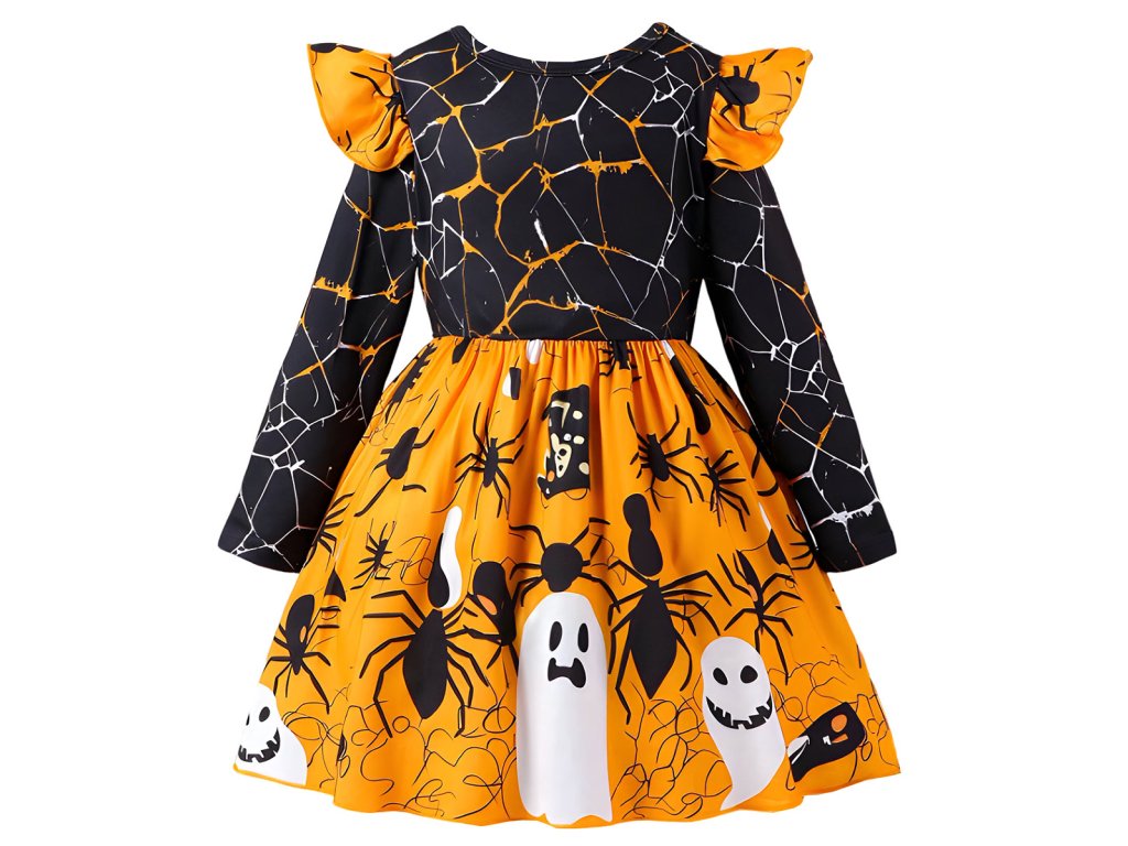 Dětské halloweenské šaty vel. 116 - Pavouci a duchové