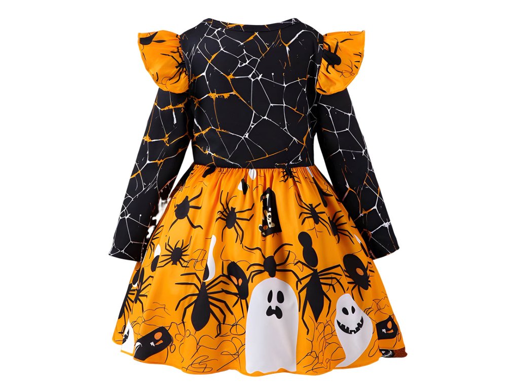 Dětské halloweenské šaty vel. 122 - Pavouci a duchové