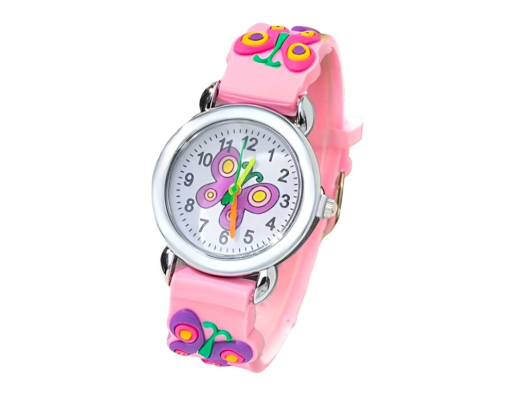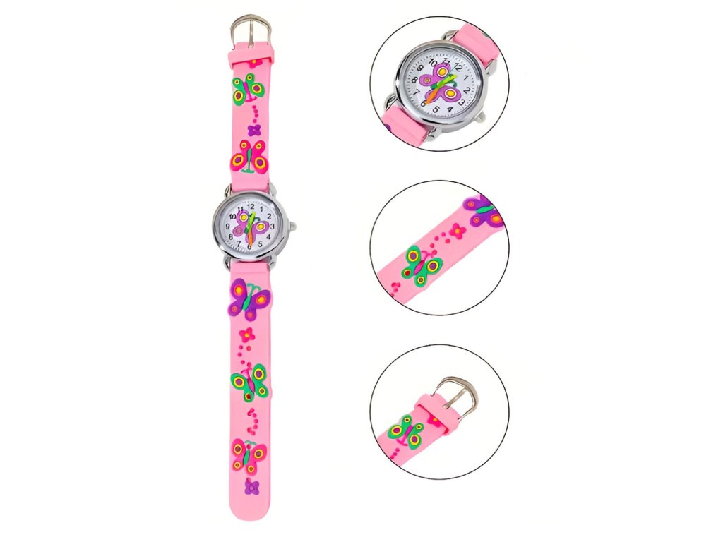 Dívčí hodinky v designu motýla potěší jistě každou malou parádnici. Díky přehlednému ciferníku s jasně označenými číslicemi si děti snadno osvojí určování času. Jasně čitelné číslice a barevně odlišené ručičky pomáhají dětem snadno pochopit, kolik je hodin, a zároveň si osvojit první základy určování času. Náramek z měkkého silikonu se snadno přizpůsobí velikosti zápěstí a zajistí, že hodinky budou bezpečně a pohodlně držet na místě. Skvělý tip na dárek k narozeninám, svátku nebo jen tak pro radost.