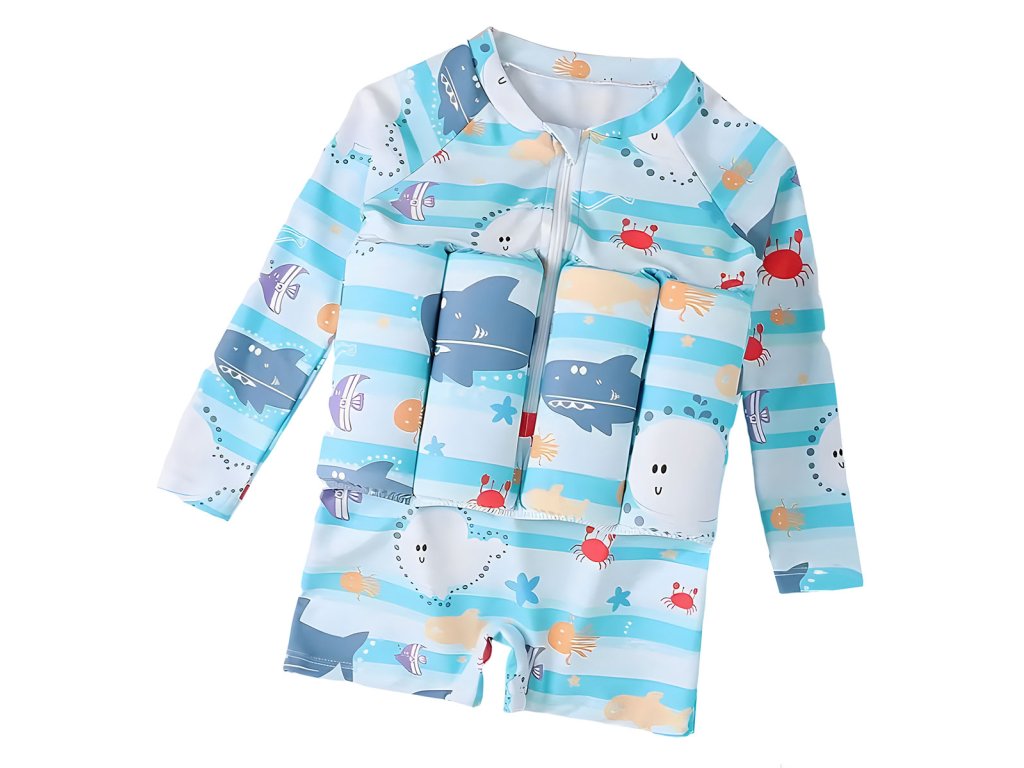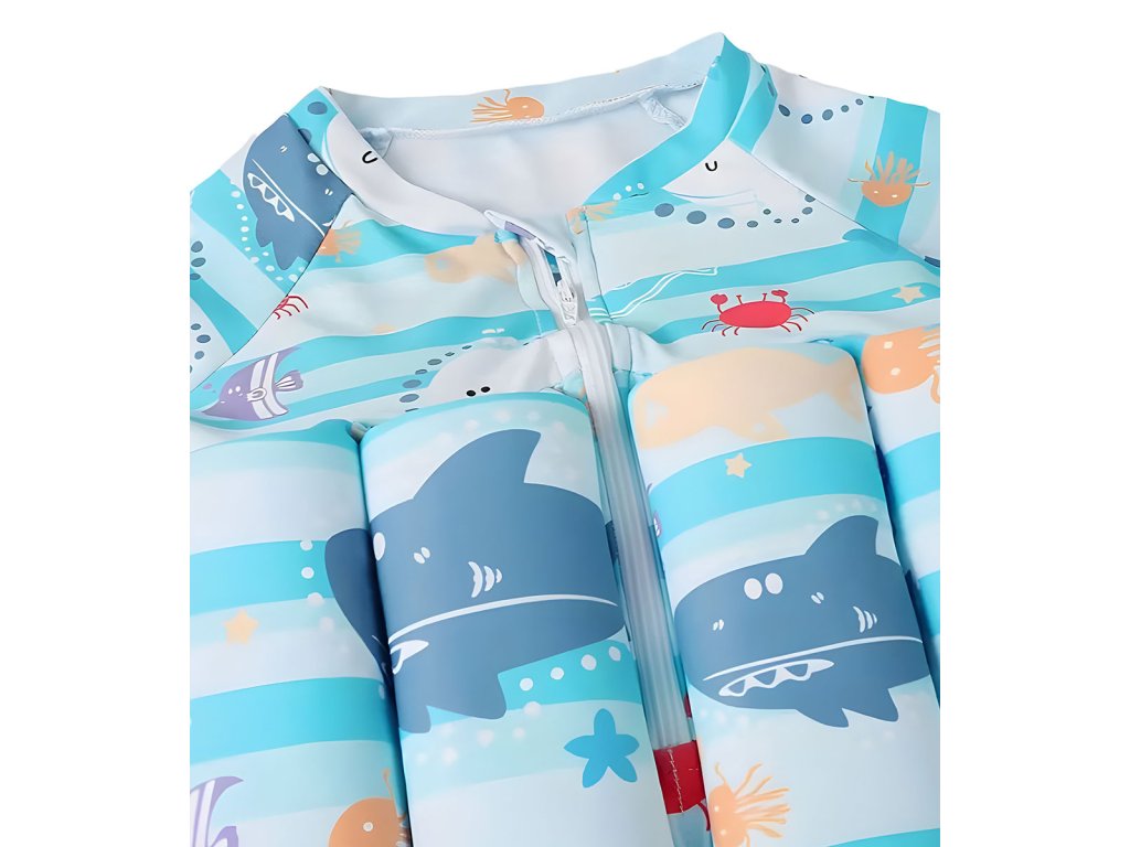 Dětské plavky s plováky vám pomohou naučit vaše dítě plavat. Na rozdíl od jiných pomůcek jsou děti ve správné poloze a při plavání používají ruce i ramena. Plováky lze postupně odstraňovat až do doby, kdy dítě plave bez pomoci. Součástí je také koupací čepice ve stejném designu.