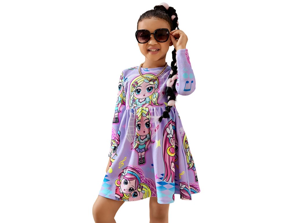 Oblíbená dětská šatovka, tentokrát s potiskem okaté holčičky. Šatičky jsou velmi pohodlné, s vysokým pasem a dlouhým rukávem.