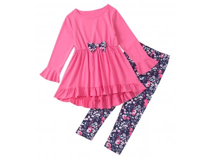 2dílná souprava se skládá s pohodlného volného trička s ozdobnou mašlí a legín. Tričko je v pase na gumu a spodní část je zdobená volánkem. Souprava je vhodná na každodenní...