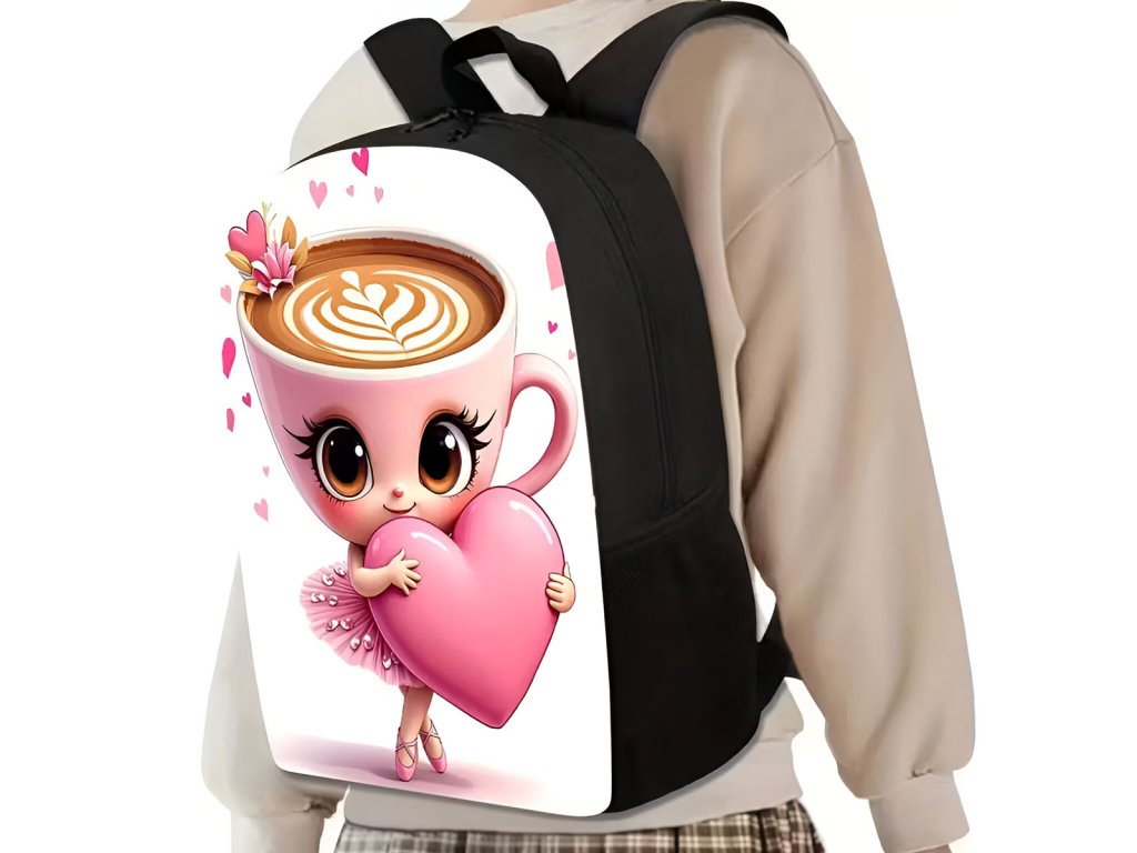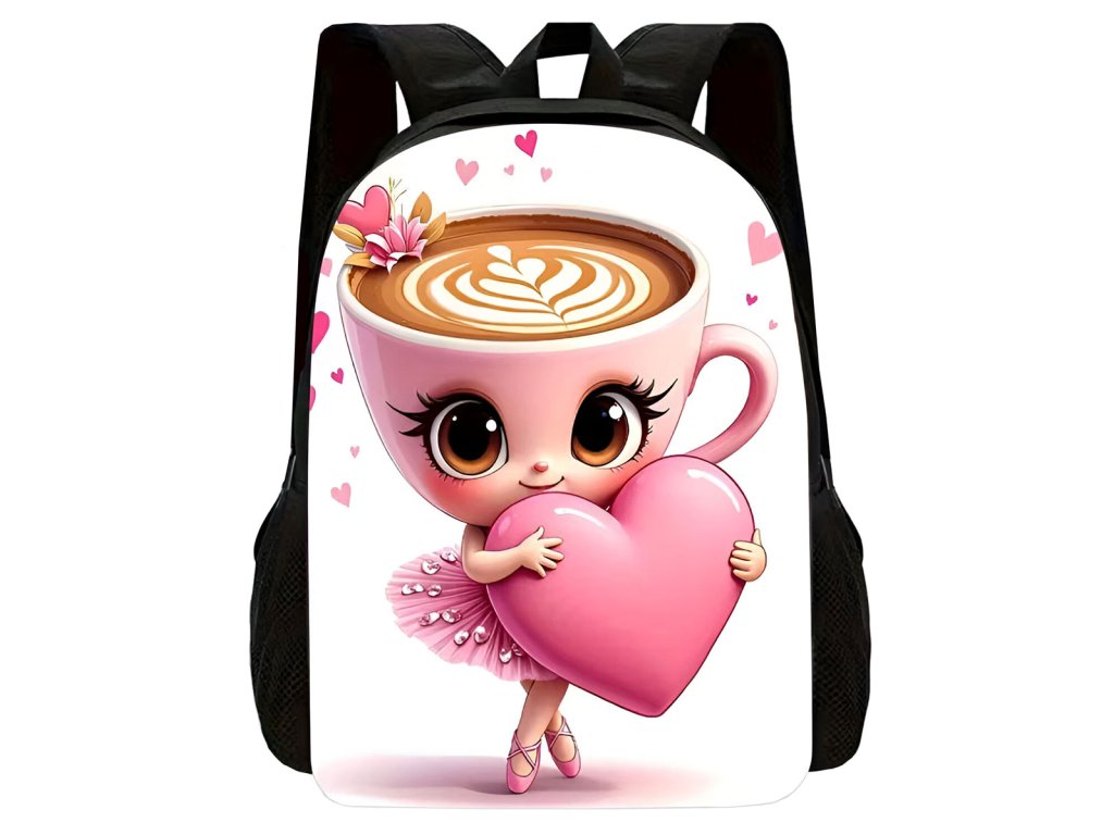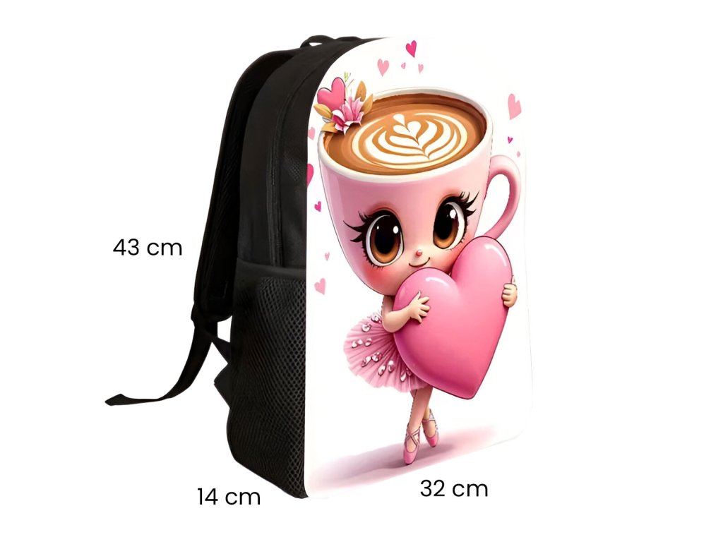 Originální a moderní batoh pro všechny holčičky, které mají rády italské postavičky AI - Cappuccinu Ballerinu. Batoh s oblíbenou tanečnicí nabízí jednu hlavní prostornou kapsu uzavíratelnou na zip. Po stranách jsou malé kapsa na drobnosti, popř. lahev. Popruhy přes ramena lze nastavit.