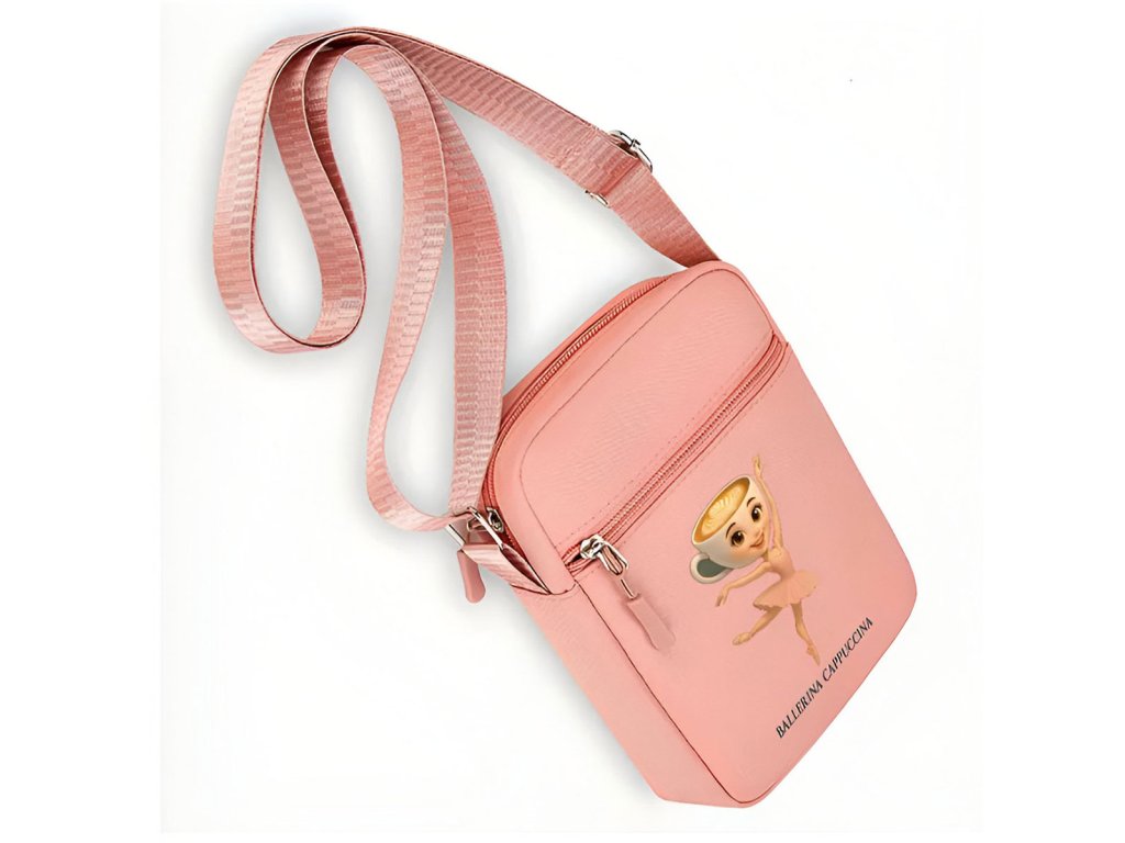 Originální a moderní taška přes rameno pro všechny holčičky, které mají rády italské postavičky AI - Cappuccinu Ballerinu. Taška s oblíbenou tanečnicí nabízí jednu hlavní prostornou kapsu uzavíratelnou na zip. Vpředu je další malá kapsa na drobnosti. Popruh přes rameno lze nastavit.