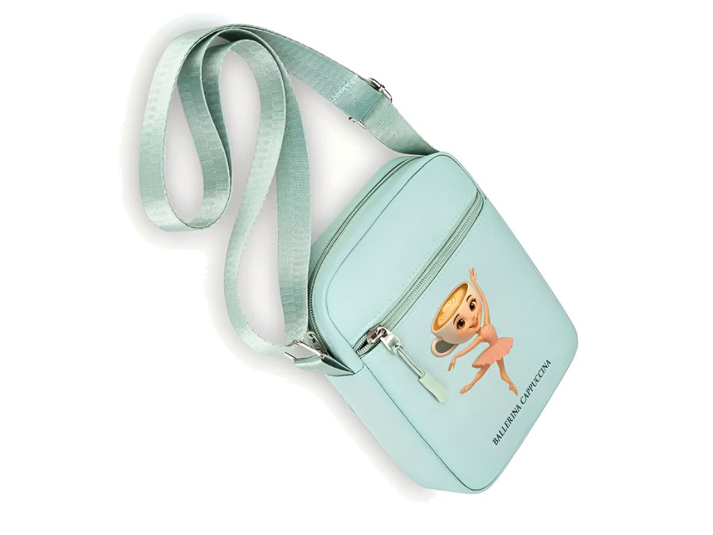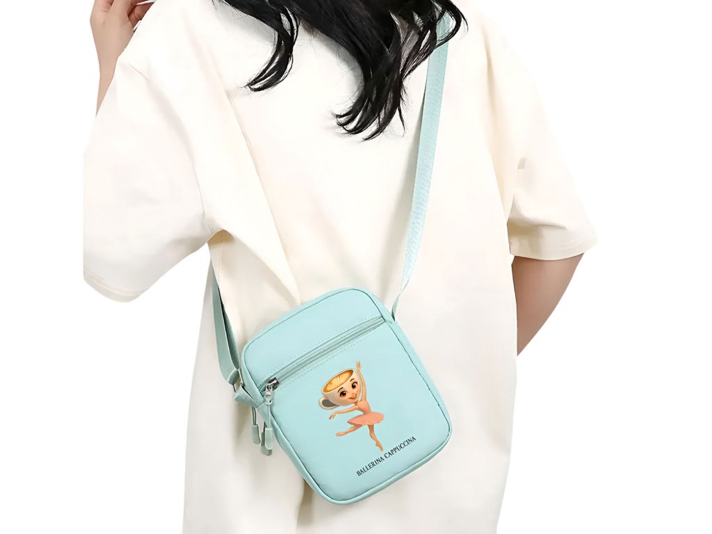 Originální a moderní taška přes rameno pro všechny holčičky, které mají rády italské postavičky AI - Cappuccinu Ballerinu. Taška s oblíbenou tanečnicí nabízí jednu hlavní prostornou kapsu uzavíratelnou na zip. Vpředu je další malá kapsa na drobnosti. Popruh přes rameno lze nastavit.