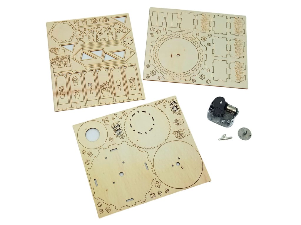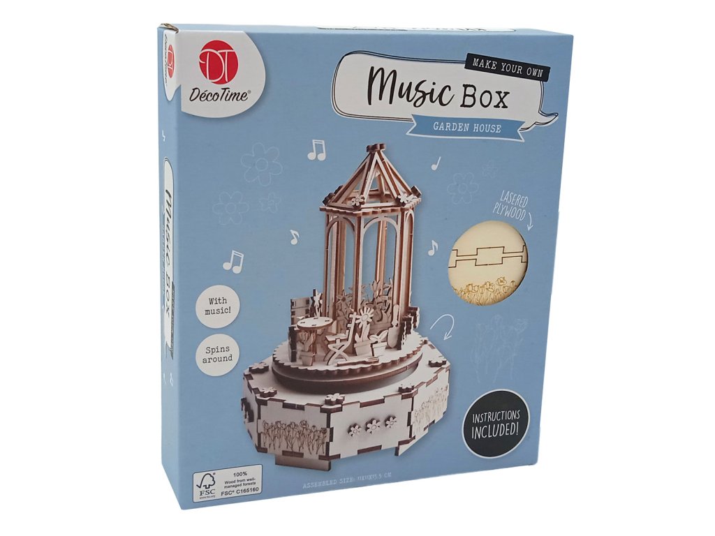 Vytvořte si vlastní 3D fungující hrací skříňku z ekologického dřeva s certifikací FSC®. Tato otáčecí skříňka po sestavení přehrává příjemnou melodii a stane se nejen krásnou dekorací, ale i originálním dárkem. Kreativní sada potěší děti i dospělé, podporuje jemnou motoriku, trpělivost a radost z tvoření. Tyto 3D puzzle jsou velmi rozšířené a oblíbené u starších dětí i dospělých.