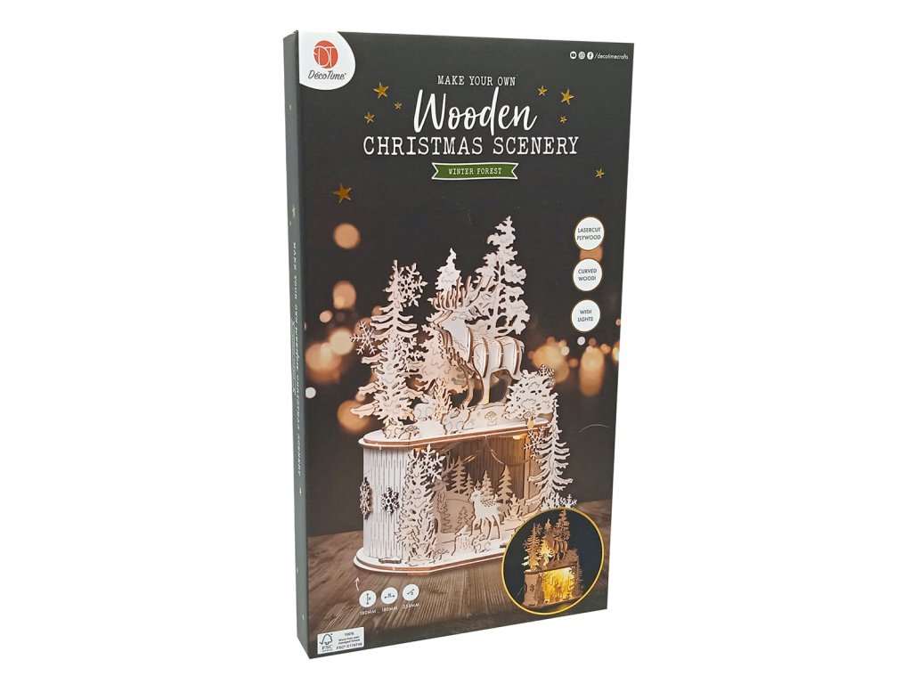 Dřevěná vánoční 3D stavebnice se světlem - Zimní les