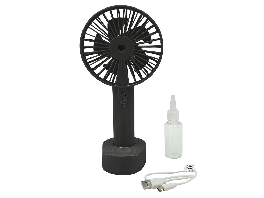 Inovativní přenosný ventilátor s integrovanou vodní mlhou, který kombinuje osvěžení a ochlazení. Má dvě na sobě nezávislé funkce. První z nich je vodní mlha, druhou z nich je ventilátor se třemi volitelnými rychlostmi. Buď jej můžete využít jako přenosný ventilátor, nebo přidáte vodu a samostatným vypínačem spustíte i mlhovač. Obě funkce můžete využívat nezávisle na sobě, nebo je kombinovat. Přístroj je jednoduše přenosný, vejde se do ruky i dámské kabelky a funguje na nabíjecí baterii. To z něj činí elegantní a užitečnou pomůcku pro horké letní dny. Jako tip doporučujeme do vody přidat 2 kapky éterického oleje (případně květovou vodu).