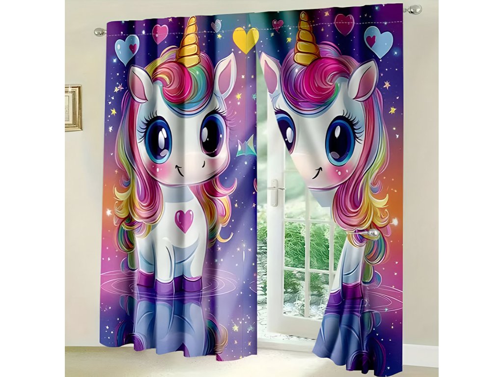 Hotové dětské závěsy 226x230 cm - Barevný jednorožec