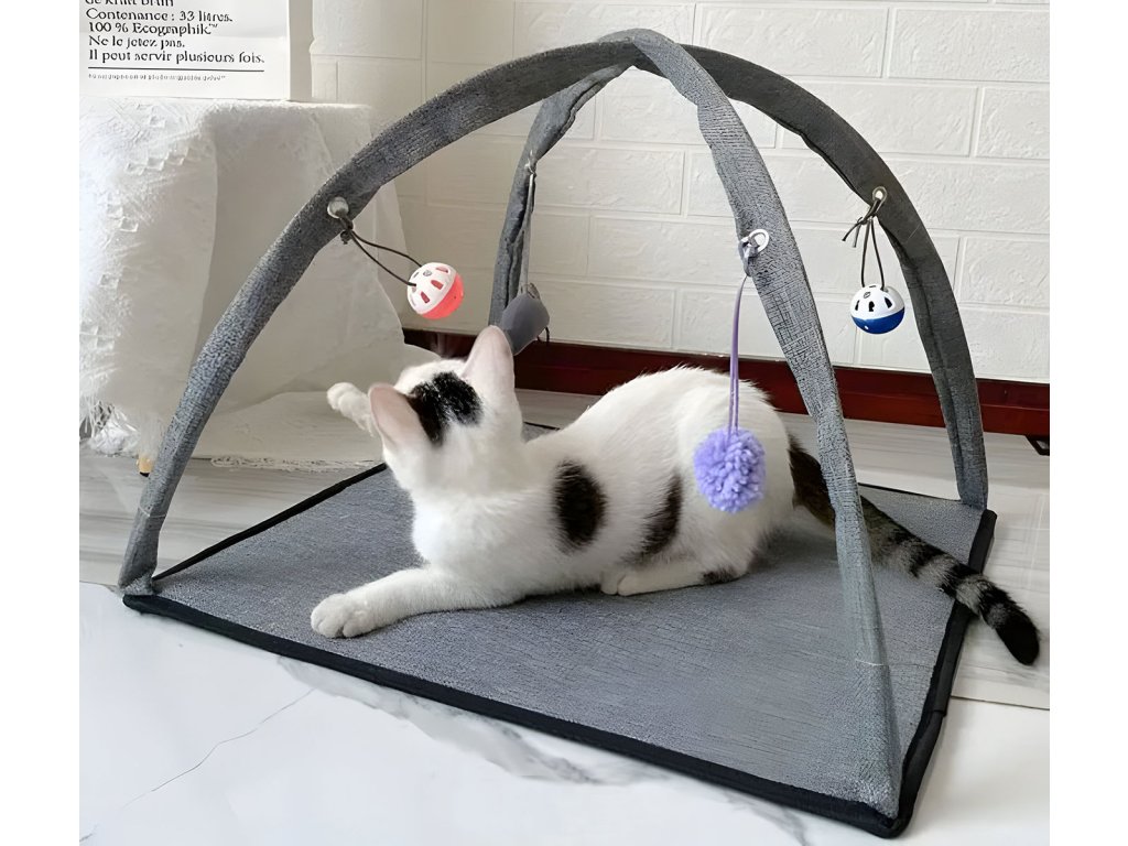 Úžasná hrací a cinkající podložka pro vaše domácí mazlíčky. Vaše kočka se na tomto veselém kočičím koberečku s příslušenstvím lehce zabaví na celé hodiny. Součástí balení i jsou i závěsné, cinkající hračky. Pod úžasnými oblouky může Vaše kočka klidně ležet a užívat si a na měkoučké dečce snít o nových dobrodružstvích.