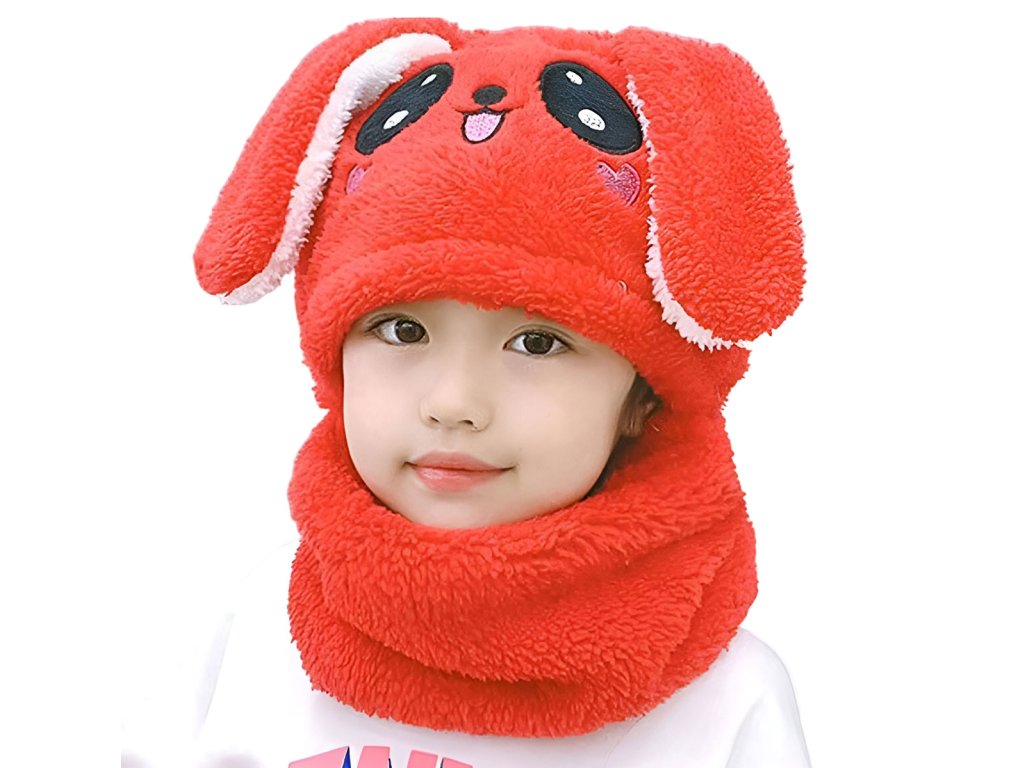 Hřejivá čepice s nákrčníkem - Červený králíček