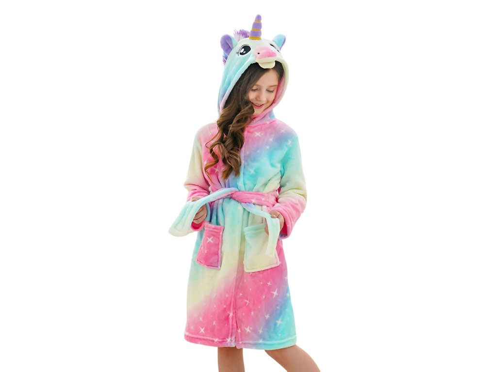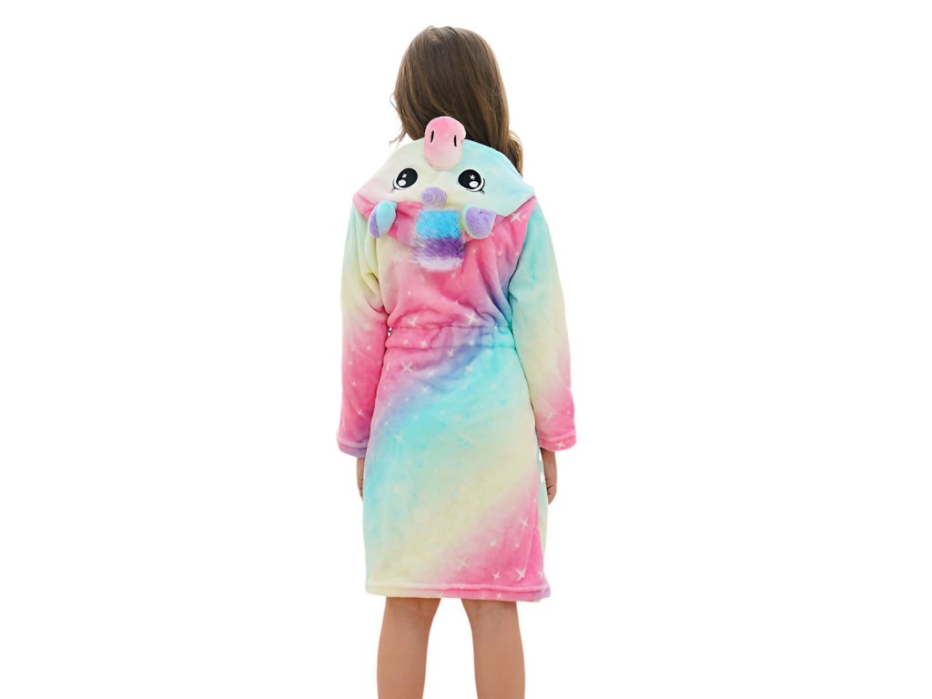 Hřejivý měkoučký plyšový župan pro malé slečny. Úžasný vzhled, praktická kapuce, kapsičky, pásek na zavázání. Župan udržuje teplo a pohodlí po koupeli, příjemně se nosí.
