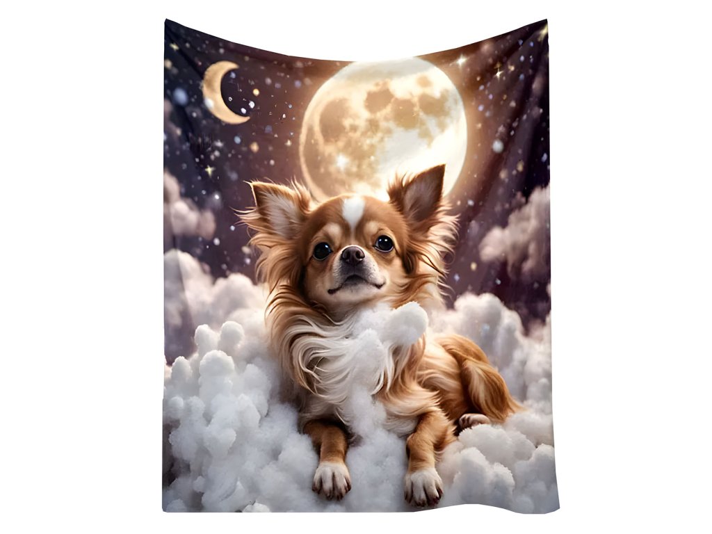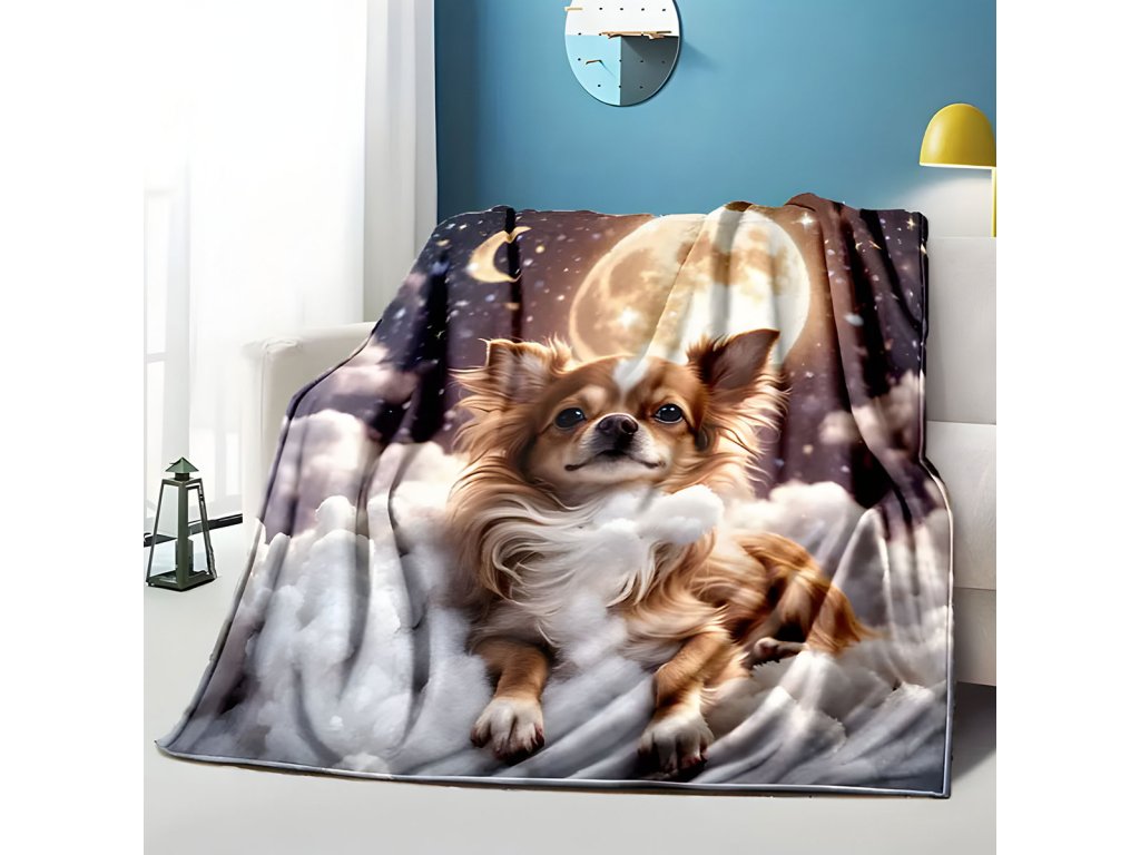 Mikroplyšová hřejivá deka 150x200 cm - Čivava a měsíční svit