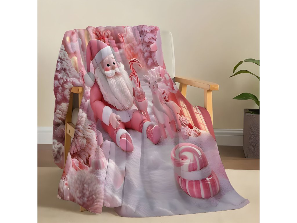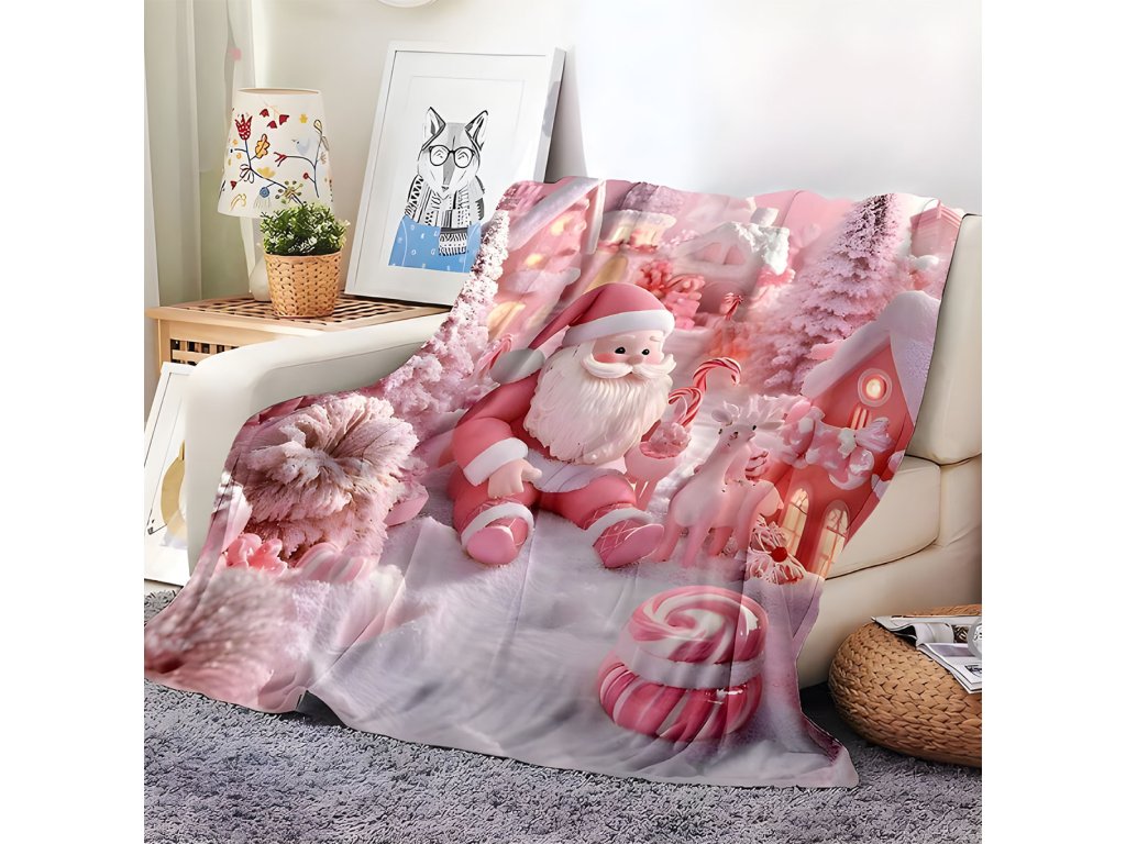 Mikroplyšová hřejivá deka 150x200 cm - Růžový Santa