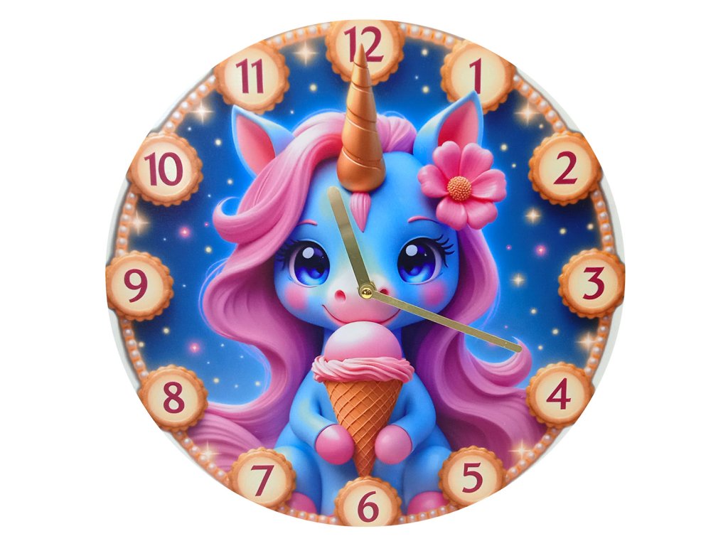 Nástěnné hodiny 30 cm - Jednorožec se zmrzlinou