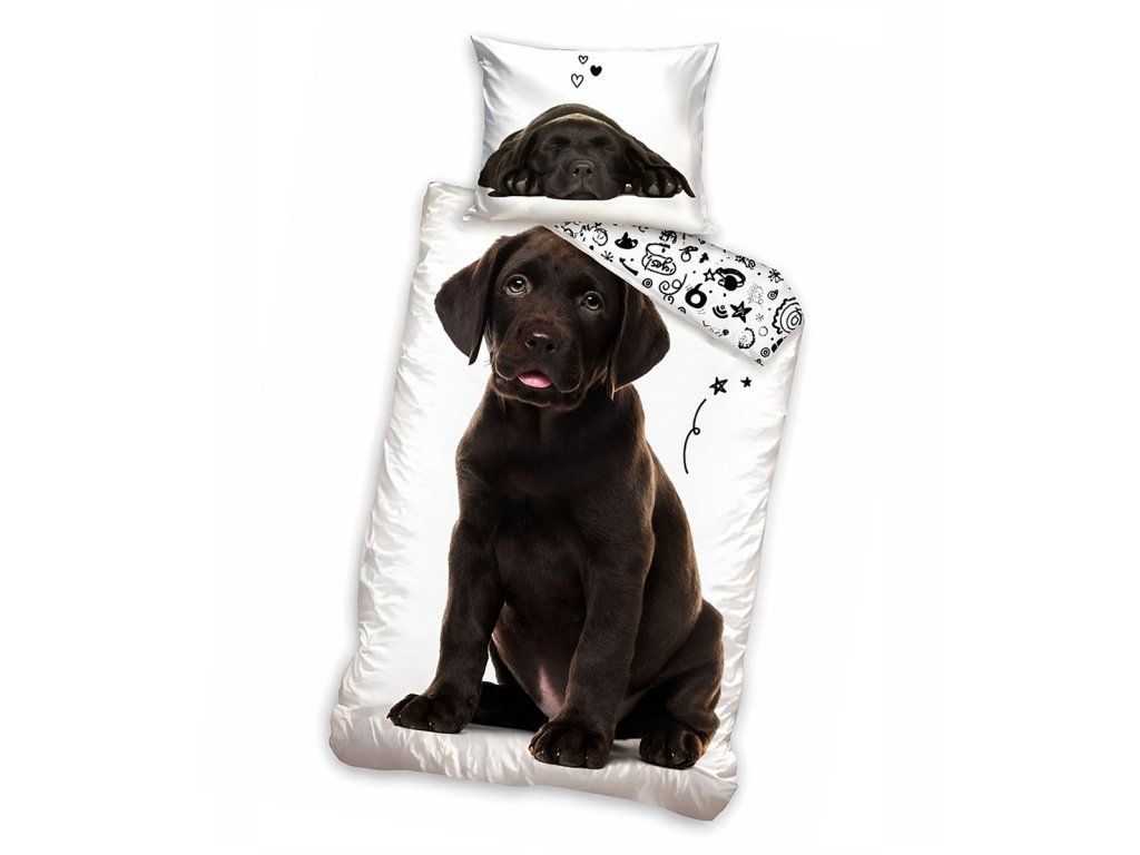 Bavlněná ložní souprava s motivem labradora. Povlečení je mimořádně příjemné na dotek a má pohodlné zapínání na zip. Výrobek je certifikován a testován na 100 zdravotně významných parametrů a má pozitivní výsledek doložený certifikátem OEKO-TEX® Standard 100, který potvrzuje, že splňuje všechny hygienické požadavky pro použití u dětí.