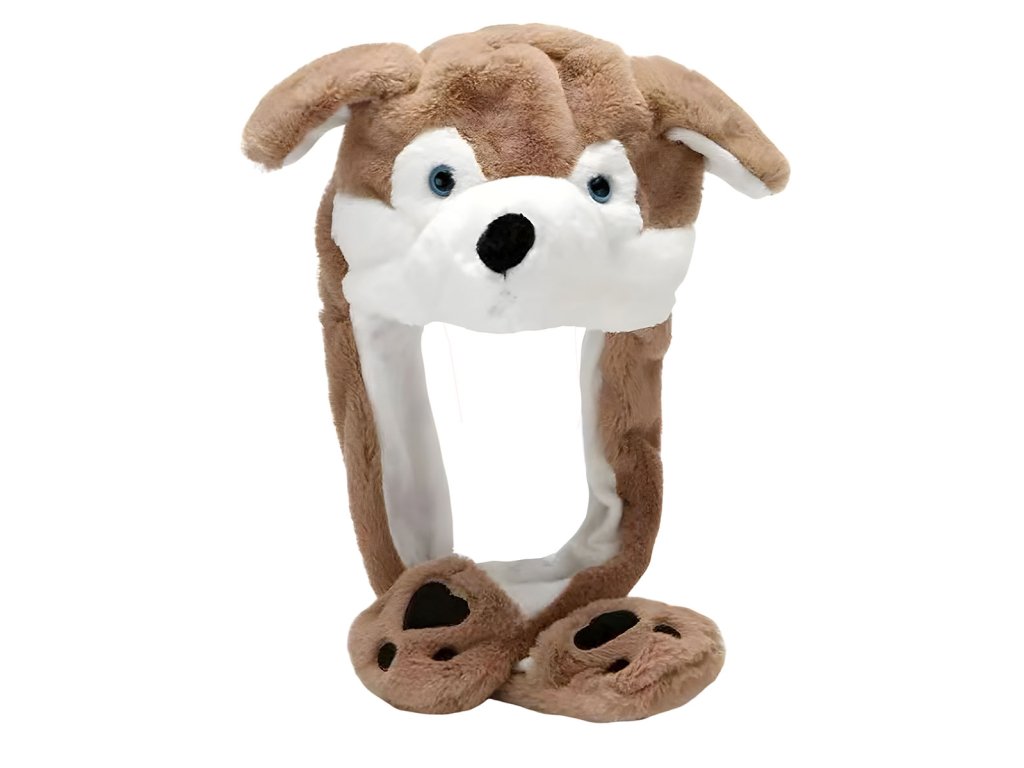 Plyšová čepice s pohyblivýma ušima - Hnědý husky