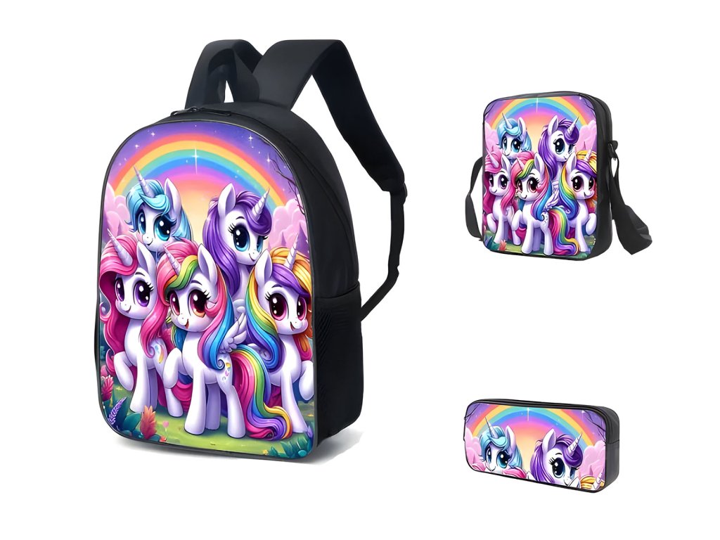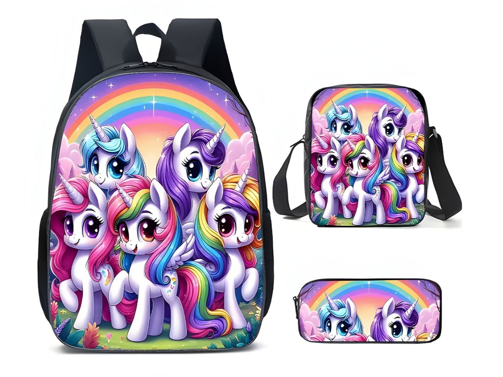 Školní sada 3ks - Batoh, penál, svač. taška - Jednorožci s duhou