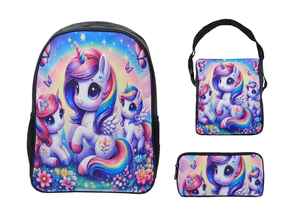 Školní sada 3ks - Batoh, penál, svač. taška - Jednorožci s motýly