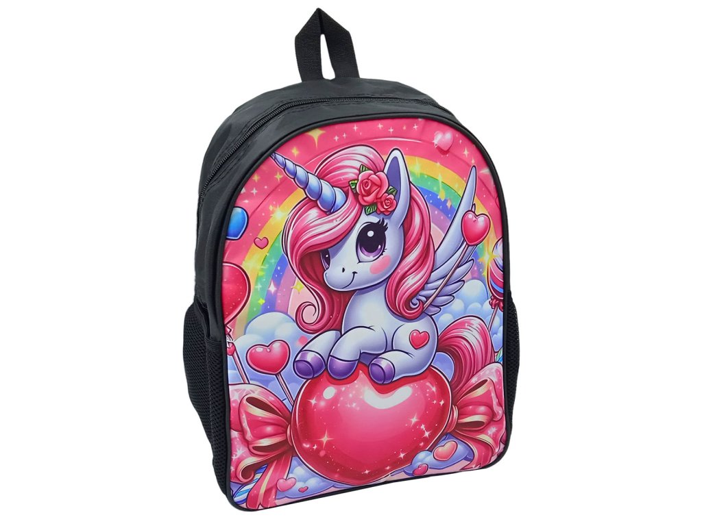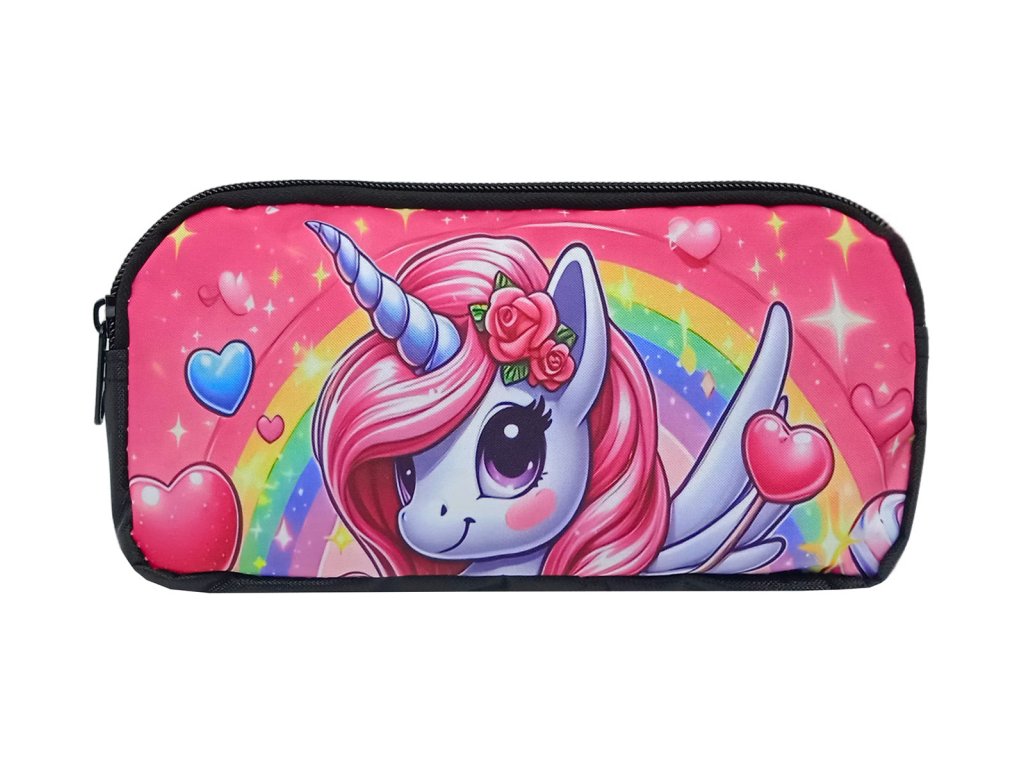 Školní sada 3ks růžová - Batoh, penál, svač. taška - Jednorožec a srdce