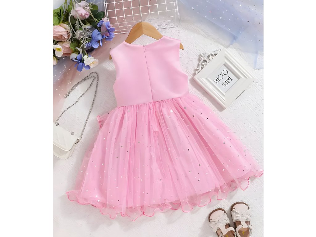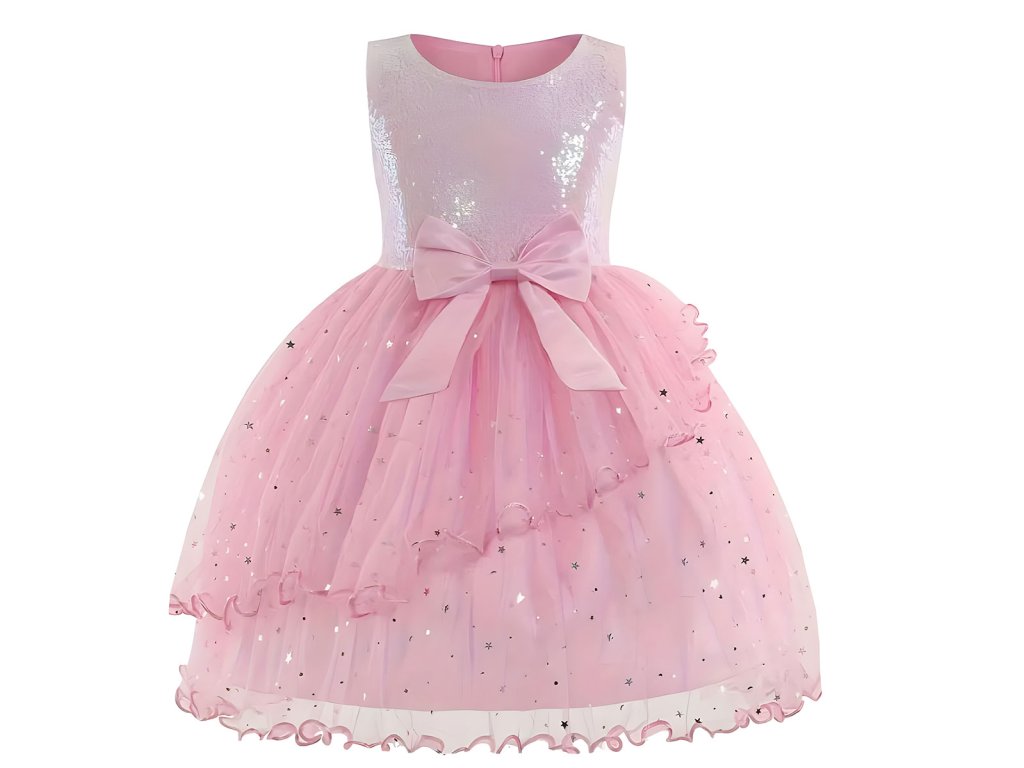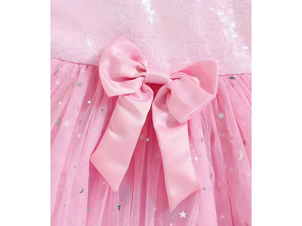 Elegantní společenské šaty s bohatou nadýchanou sukní, zdobené malými třpytivými flitrami. Jsou vhodné na jakoukoliv slavnostní příležitost, na karneval, narozeninovou oslavu nebo oblíbené dětské párty. Tyto společenské šaty jsou více než jen o módním projevu - jsou o vytváření nezapomenutelných okamžiků plných radosti a půvabu. Dejte možnost vaší malé slečně zazářit na každé slavnostní události v těchto nádherných šatech, které zdůrazní její jedinečný půvab.