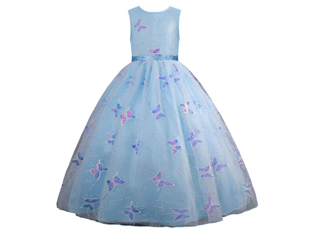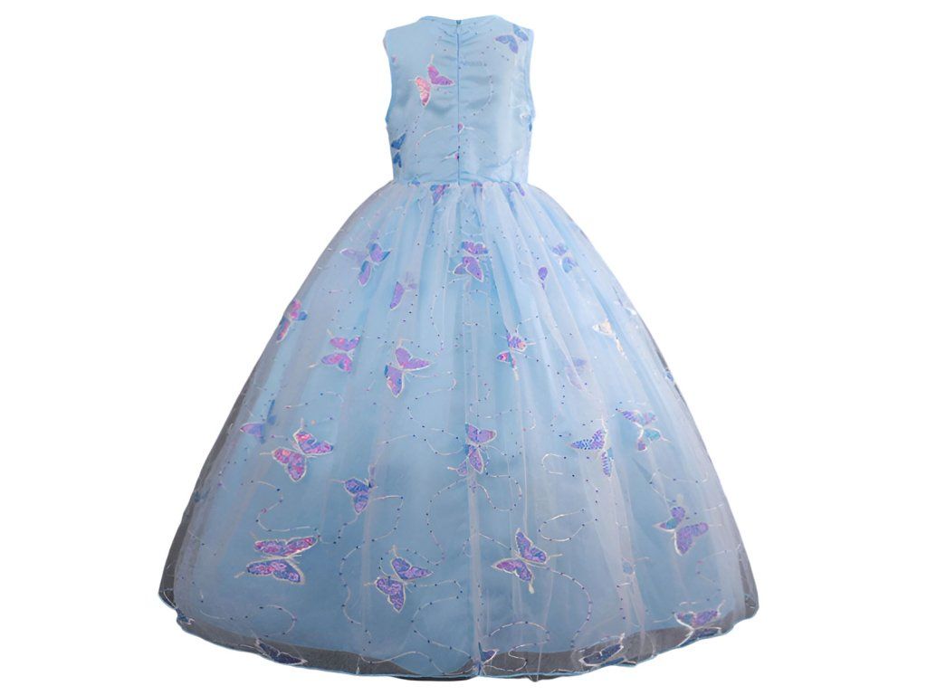 Krásné společenské šaty s dlouhou nadýchanou sukní. Zdobené jsou drobnými flitrami a výšivkou ve tvaru motýlů. Jsou vhodné na jakoukoliv slavnostní příležitost, na karneval nebo oblíbené dětské párty. Tyto společenské šaty jsou více než jen o módním projevu - jsou o vytváření nezapomenutelných okamžiků plných radosti a půvabu. Dejte možnost vaší malé slečně zazářit na každé slavnostní události v těchto nádherných šatech, které zdůrazní její jedinečný půvab.