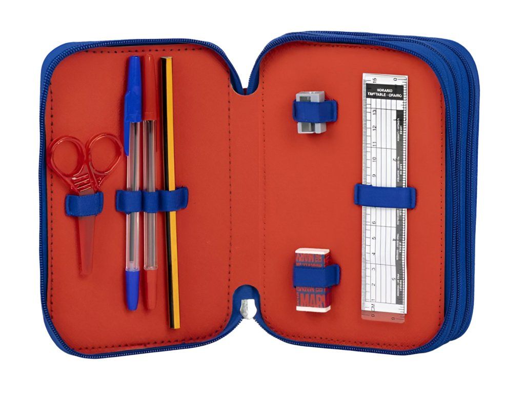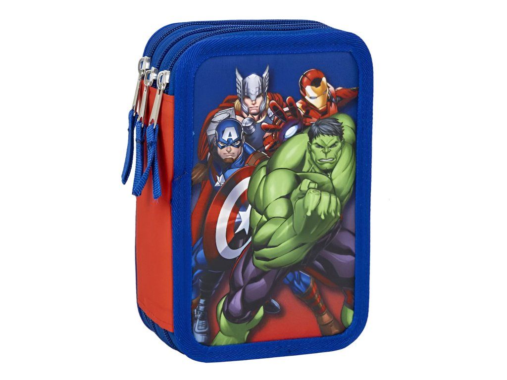Licencovaný školní penál Avengers jistě potěší každého malého školáčka, který má rád superhrdiny. Penál má tři patra a obsahuje fixy, pastelky, tužky, gumu, pravítko, ořezávátko, bloček a kapsu na rozvrh. Obsahem penálu jsou kvalitní tužky a fixy italské firmy GIOTTO.