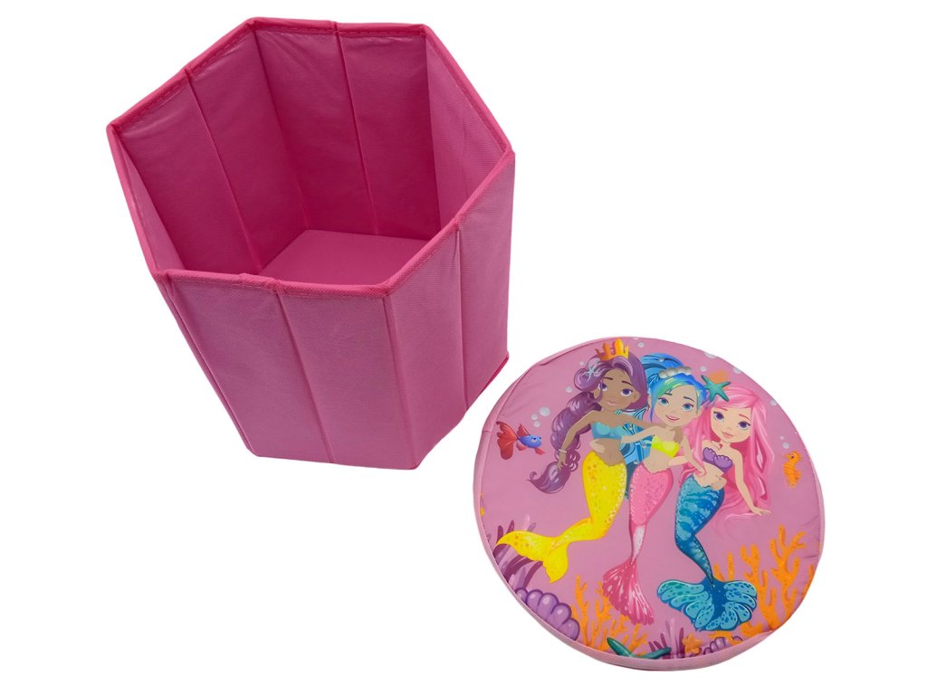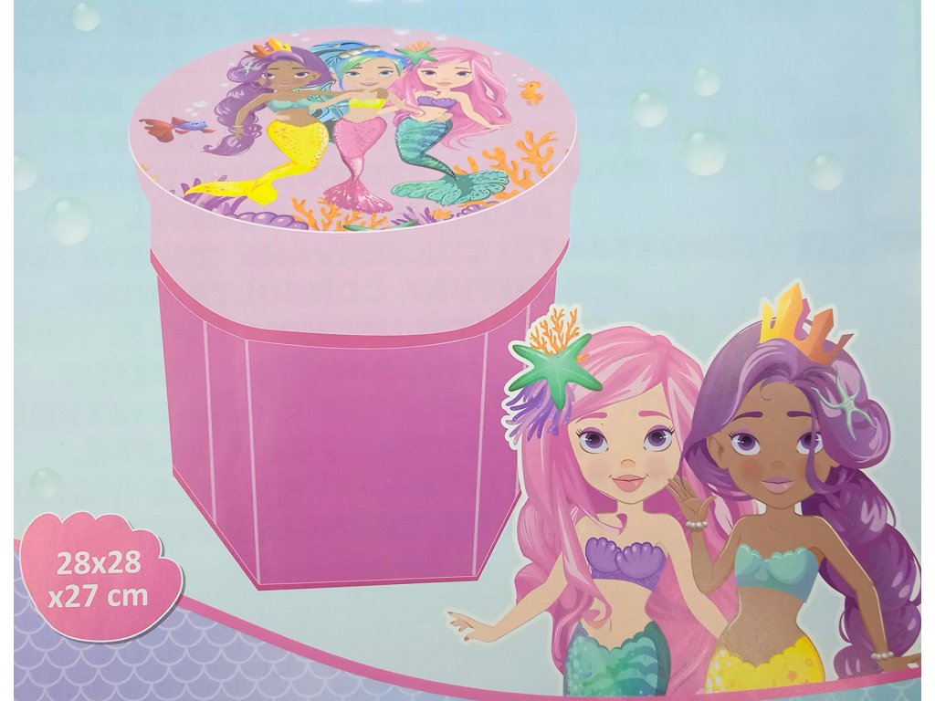 Pro všechny holčičky, které milují pohádkové mořské panny je určen tento dětský úložný box na hračky. Může sloužit také jako taburet, nebo k ukládání hraček a jiných pokladů. Box je opatřen snímatelným víkem. Sestavení je velmi jednoduché. Box je dostatečně pevný, aby jej bylo možné použít jako židli, přídavné sedadlo, podnožku nebo stoličku.