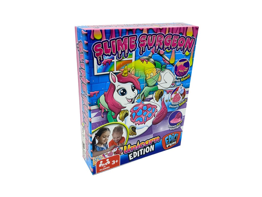 Tato stolní hra je natolik jednoduchá, že se do ní může zapojit každý. Jednoduchým otáčením šipky si vyberte část těla, která je ponořena do vámi vytvořeného slizu a kterou chcete u jednorožce vyjmout. Pomůžete zachránit tohoto jednorožce a obnovit jeho plné zdraví odstraněním všech slizkých částí těla? Dávejte pozor, abyste je nepřinutili třást se strachy. Vítězem se stává hráč, který má na konci nejvíce částí těla.